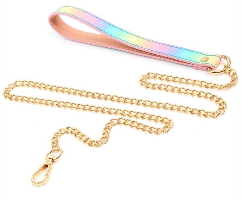 Ce collier se compose d’une couleur irisée avec une chaîne en métal doré.