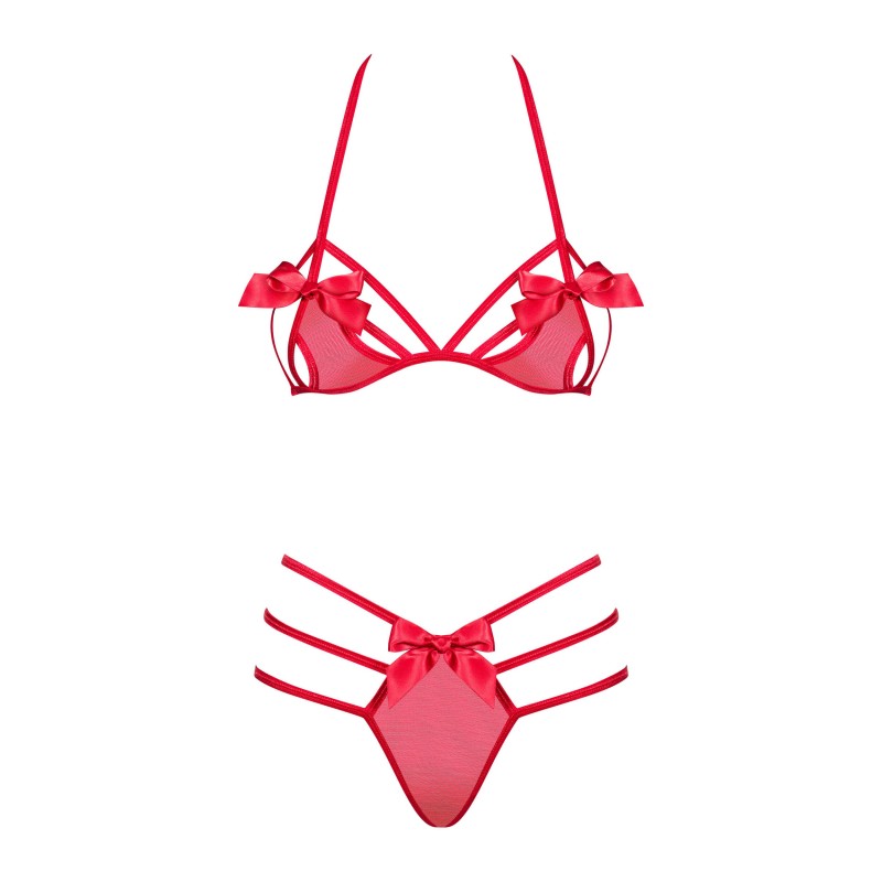 Rouge glamour, détail coquin, découpes et lanières tendances et ultra sexy.