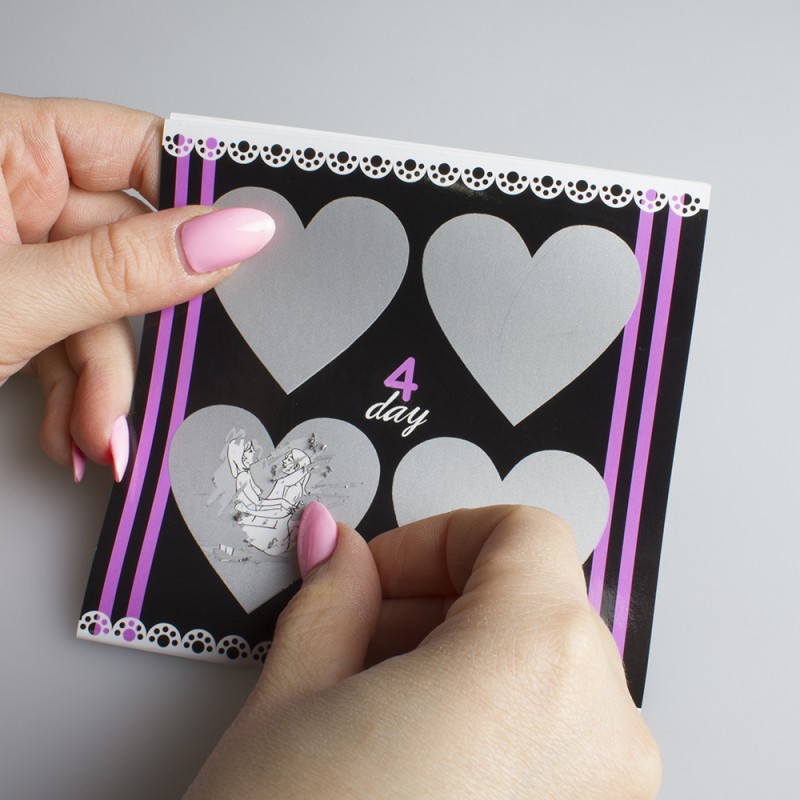 Ce jeu à gratter sexy lesbien contient 7 cartes de 4 cœurs à gratter.