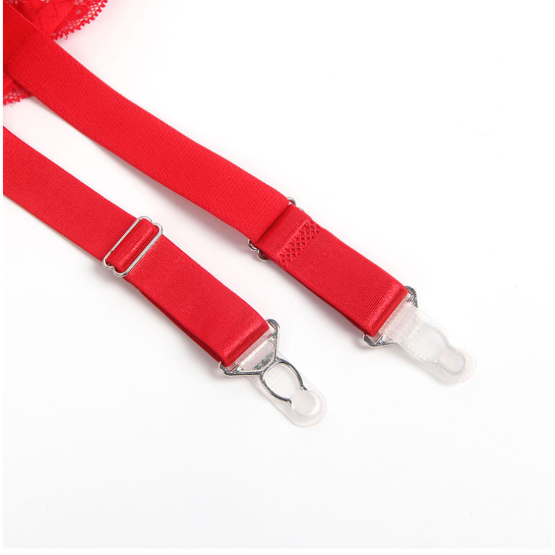 Découvrez ce porte-jarretelles en dentelle rouge, alliant sensualité et confort. Le tissu en maille de dentelle est respirant, offrant une allure sexy et élégante. Ses quatre sangles élastiques assurent un maintien parfait, tandis que la couleur unie et le large bandeau en dentelle apportent une touche de sophistication discrète et raffinée.
